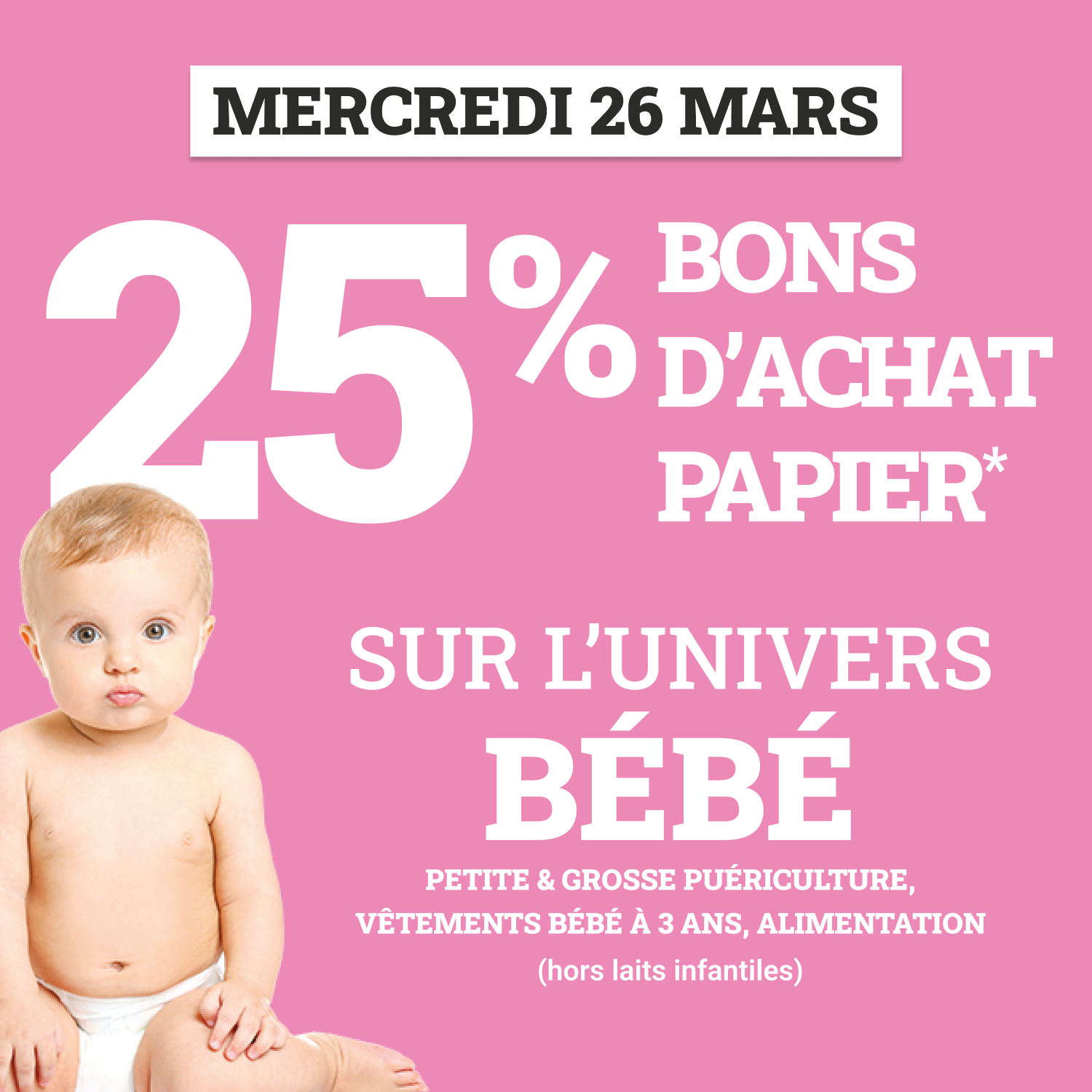 * Bénéficiez d’un bon d’achat papier de 25% sur ce rayon, valable uniquement dans votre Hypermarché (hors concepts) jusqu’au 12/04/2025. Les bons ne pourront pas être utilisés pour les achats à la station ni l’achat de cartes-cadeaux. Offre non cumulable avec les promotions en cours